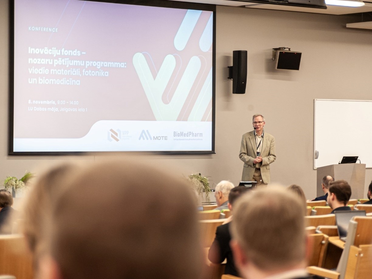 Representatives from Latvia’s leading universities, research institutes, policymakers, and industry stakeholders convened at the House of Nature of the University of Latvia on November 8, 2023, for the "Innovation Fund - Sectoral Research Program: Smart Materials, Photonics, and Biomedicine" conference. The event served as a platform to discuss the progress and outcomes of the "Innovation Fund" program, shedding light on the achievements of the sectoral research program. Additionally, participants aimed to pinpoint the industry’s needs and explore available state support crucial for propelling scientific innovations into the market.